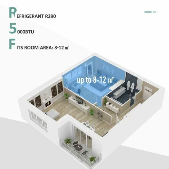 . Powerful R290 refrigerant and 5000 BTU instantly cools your room