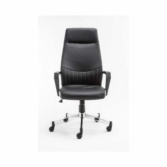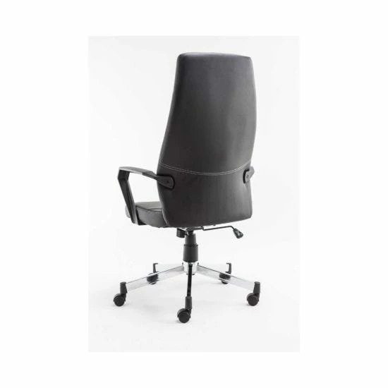 The black faux leather chair is complimented by silver stich detailing. Find your perfect working position using the traditional tilt mechanism with tension control.