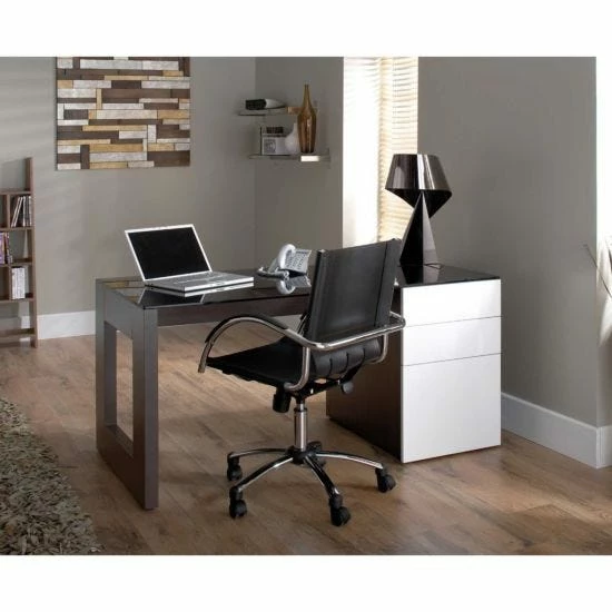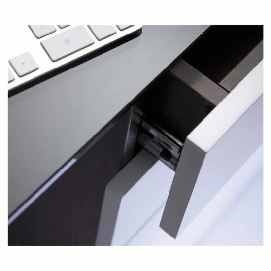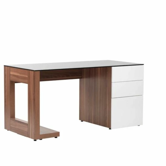 The Sorbonne has a contemporary Walnut finish and complementing glass top with high gloss white finish on the front of the drawers.