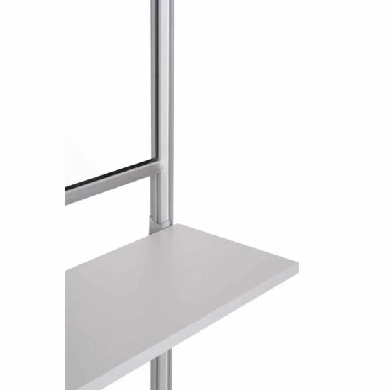 The mobile workstation is made from a sturdy and durable aluminium structure, with tempered glass safety panels which allow a clear view whilst still offering protection. A small desk area also feature on this mobile workstation.