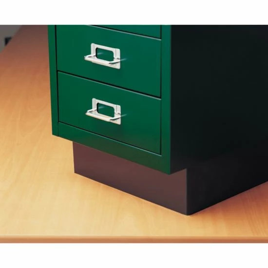 This black Plinth easily attaches to the bottom of the cabinet and raises it to a standard table or desk height. This allows for easier bottom drawer use and increases the height of the overall unit by 80mm.