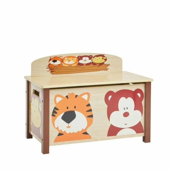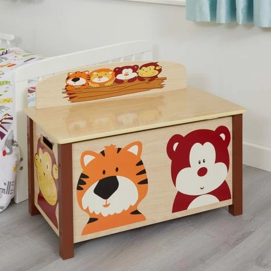. Friendly Lion, Monkey, Bear and Tiger characters adorn this usefully large toy box.