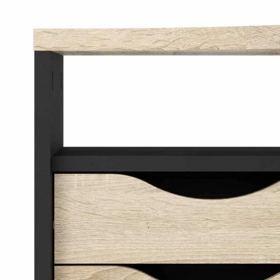 The contemporary design of this desk features 2 handle-less drawers as well as 3 handy shelves to keep office equipment and stationery tidy and out of sight.