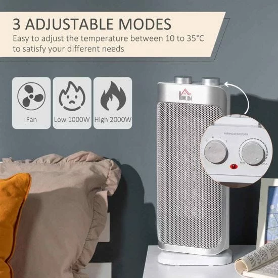 . Adjustable heating mode (Fan/Low/High)