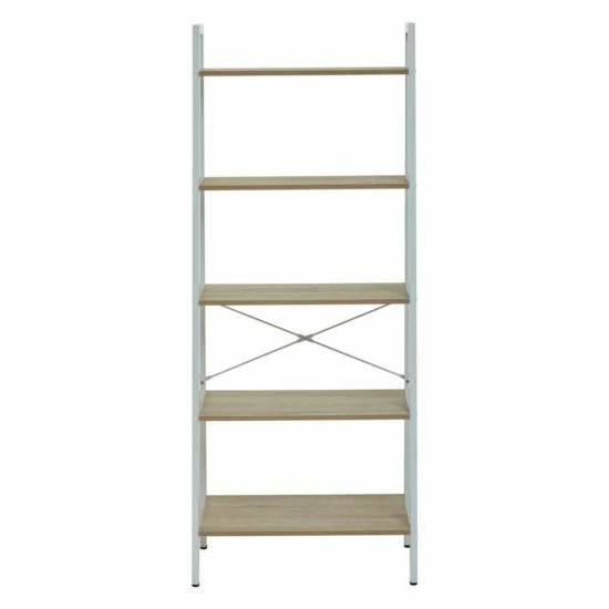 Made with an open metal frame with a stylish and structural cross brace at the back, this shelving unit features 5 wooden effect shelves to store anything from books to houseplants.