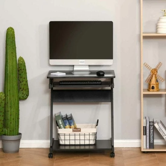 Featuring a metal ‘Z’ shaped from the help promote balance, this computer desk features a compact design to fit in smaller spaces and alcoves and 4 wheels to move around easily, 2 of which can be locked.