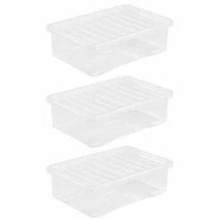Wham Plastic Storage Box 14.75 Litre Pack Of 3 Clear With Grey Lid