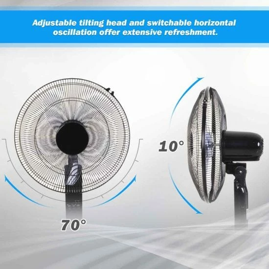 The fan height is adjustable from 110-124 cm, fixed to a sturdy round base for support. Three speed settings which can easily be adjusted either using the remote control or manually on the fan, whilst the oscillating design allows you to cool a larger area.