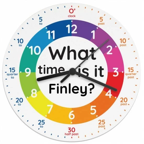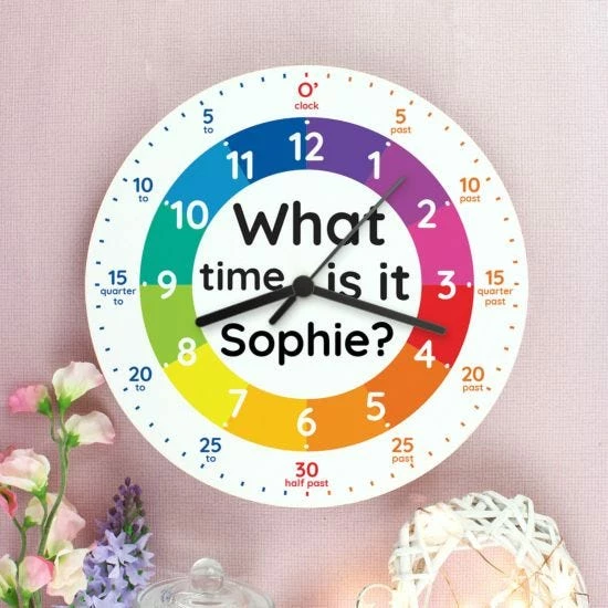 Help your Children tell the time with this Personalised What time is it Wooden Clock.