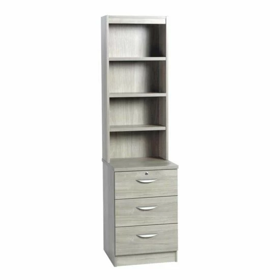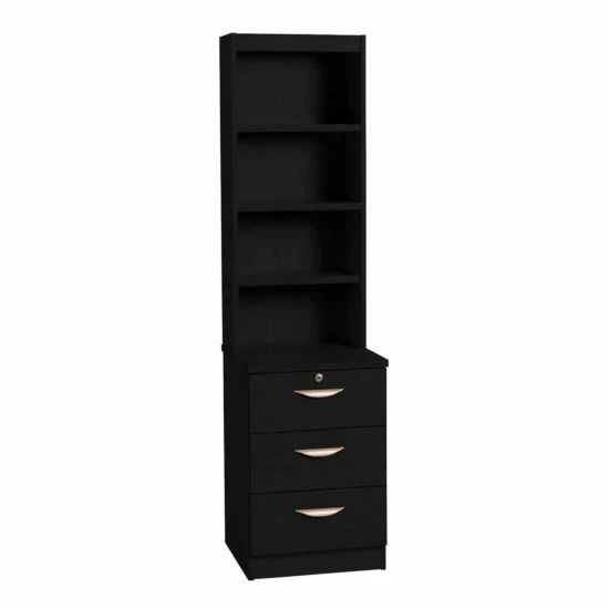 The sturdy hutch features one fixed shelf for strength and two adjustable shelves with 9 available height settings. These two pieces can be easily connected and are made from furniture quality MF Cab which is resistant to hot cups and scratches.