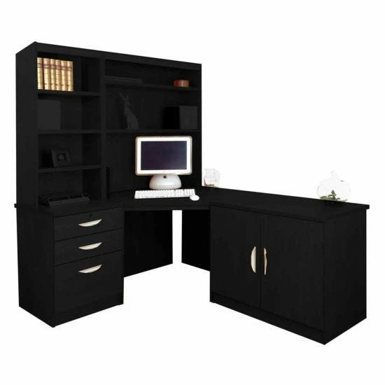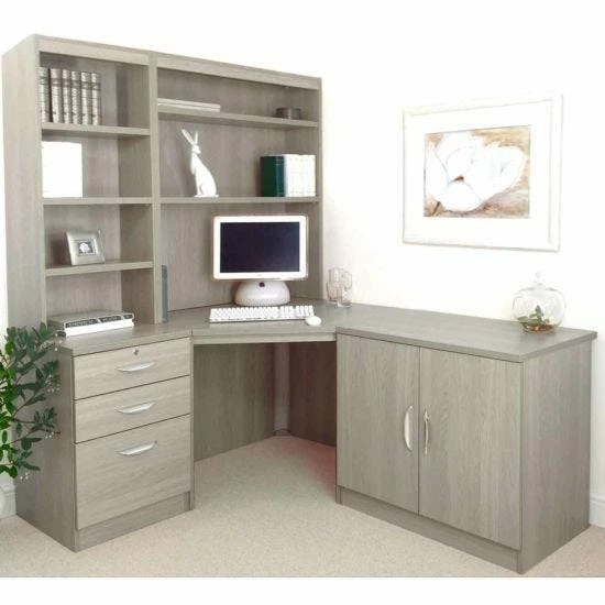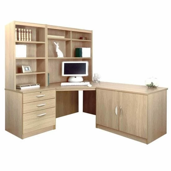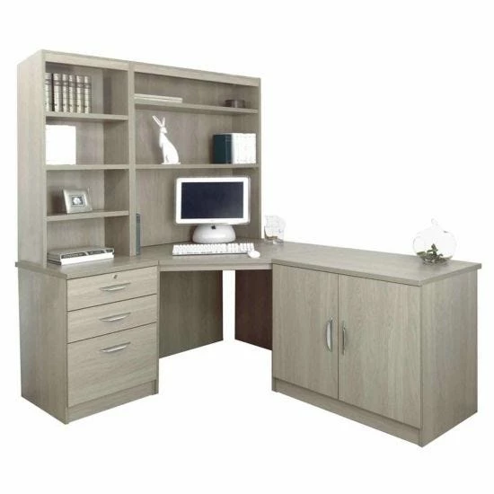 The R White Home Office Corner Desk Set with Overshelving is crafted from high quality, durable MF Cab, which is both heat and scratch resistant.