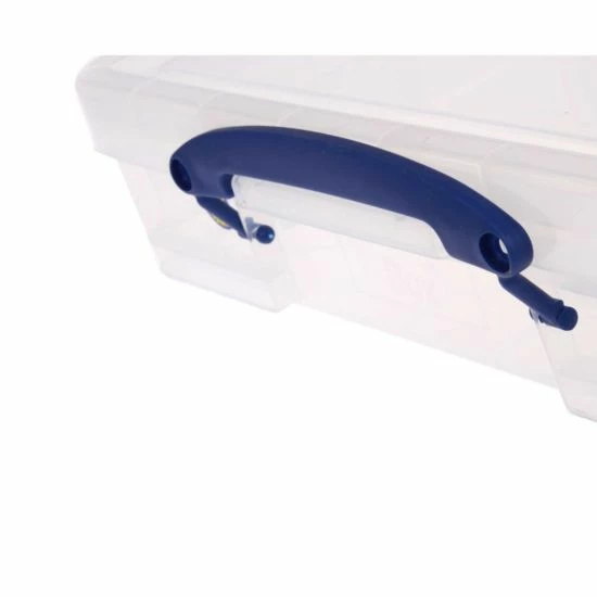 The Really Useful Box is a transparent, solid plastic box with a tray insert for multi-purpose storage.