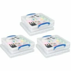 These 7 litre boxes come with a lid and clip lock handles to keep the contents secure. They are designed for 12 x 12 inch paper and can be used for storing a range of items such as office supplies, school stationery, crafts items, and many more.
