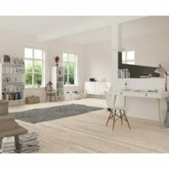 The solid oak legs and handles contrast with the white desk top and the drawers provide ample storage space.