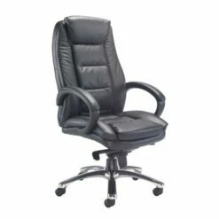 Suitable for users up to 115kg, this executive chair also features a stylish chrome base which contrasts beautifully with the black leather for a sophisticated style.