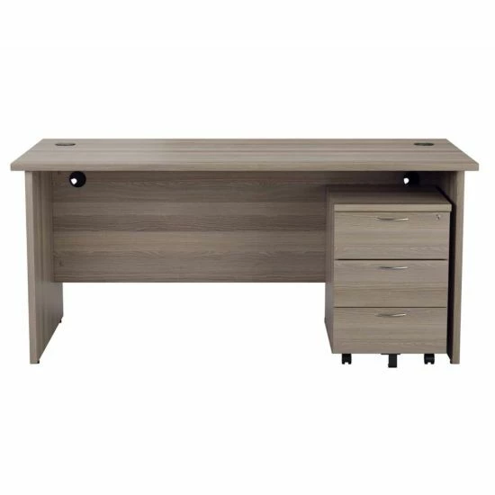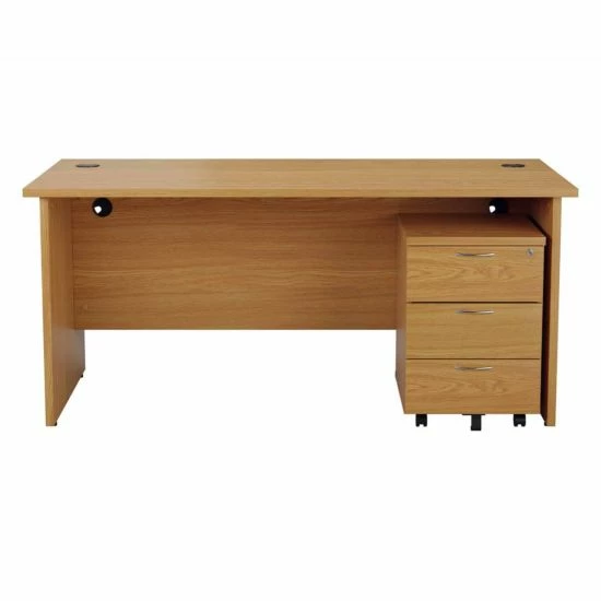 This 1600mm desk comes with FSC certified large panel end legs and a modesty panel as well as 2 fixed cable ports to keep cables reachable and tidied away.
