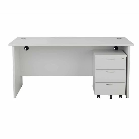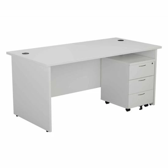 This contemporary TC Office Panel End Desk and 3 Drawer Mobile Pedestal Bundle 1600 x 800mm is a great way to create a large workstation within the office with easily accessible lockable storage.