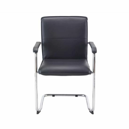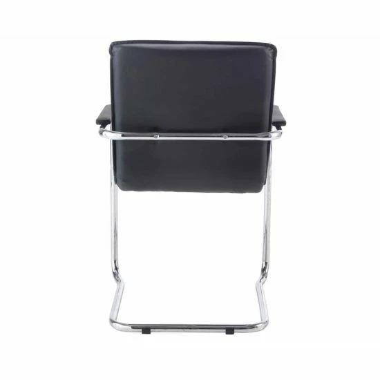 The complementary chrome cantilever base features plastic skid feet to protect flooring and adds a modern touch.