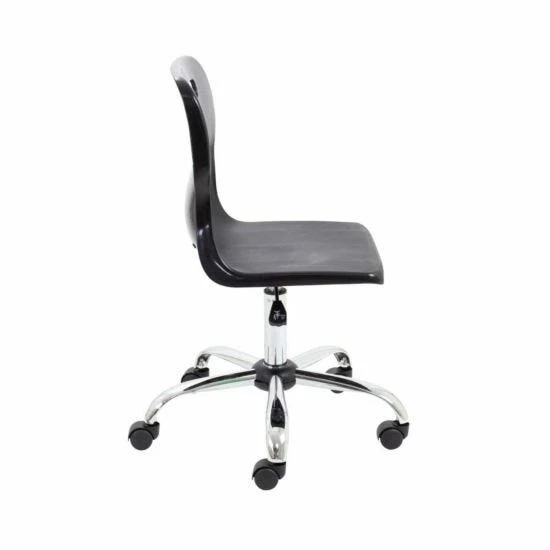 With a moulded ergonomic seat, chrome swivel base and black vinyl castors, this senior swivel chair is innovative and practical.