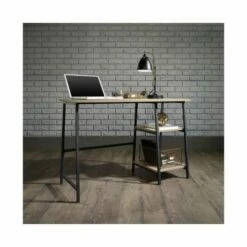 Featuring supple leather look upholstery and contrasting cross-woven accent fabric, this professional looking visitors chair is a stylish staple.