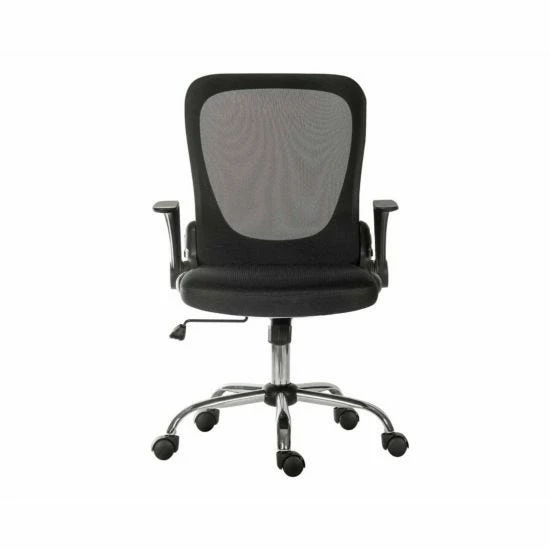 Made with a comfortable black mesh, black armrests and a bright chrome base, this chair is practical and streamlined.