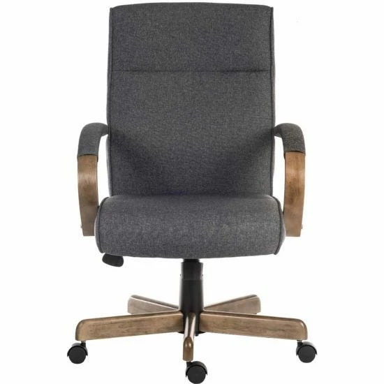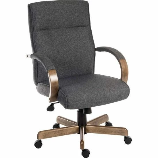 Featuring an elegant 5 star base with a driftwood finish, matching armrests and grey upholstery with removable arm covers, this executive chair is stylish and modern to suit any office decor.