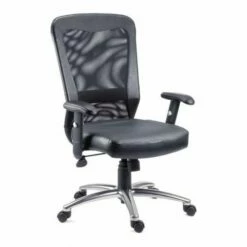 With its modern mesh back and leather faced seat and surround backrest, this executive chair features a unique design whilst providing aeration to pass through for additional comfort whilst working.