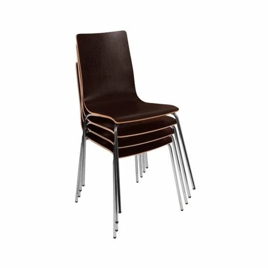 This stylish bistro chair with wenge coloured seat and back is ideal for any breakout area, canteen or cafeteria environment. Also suitable for commercial use this chair has exposed ply accent and chrome frame.