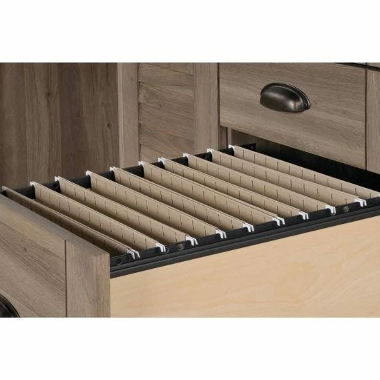 There are three drawers on smooth gliding, metal runners with a patented T-lock assembly system. The lower drawer is designed for storing letter-size hanging files, while the top two drawers are ideal for stationery essentials. The slide out keyboard and mouse shelf is also on metal runners with safety stops.
