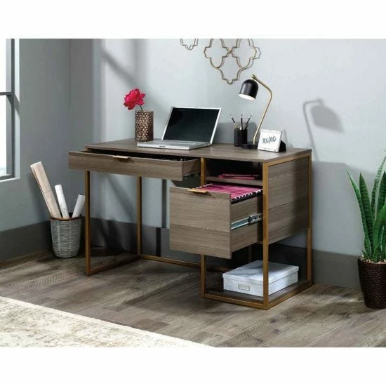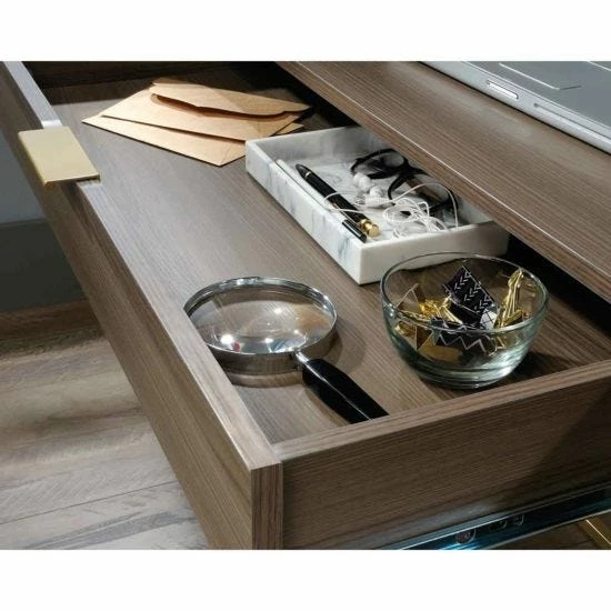 Also offers useful, versatile storage with a cubbyhole and a lower filing drawer with full extension slides for holding letter size hanging files.